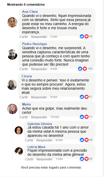 Eu vou usar minhas habilidades psíquicas para desenhar a sua alma gêmea. No seu lugar eu também não acreditaria pois, pos só fui acreditar quando aconteceu comigo. O impacto foi tão positivo que resolvi me dedicar a ajudar outras pessoas, e você é uma delas.